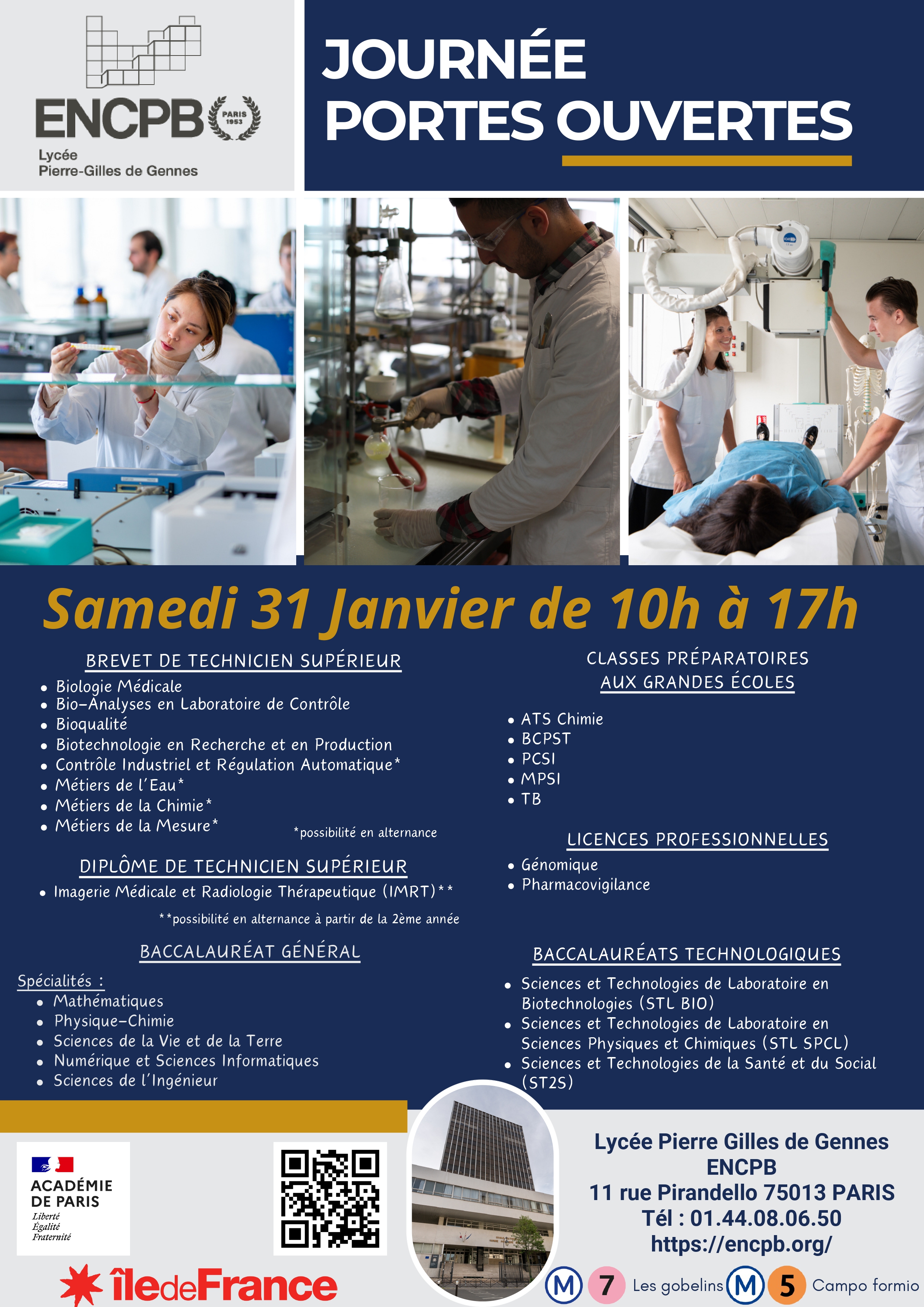 Établissement scientifique et public, du secondaire au supérieur, en Chimie, Physique, Biologie et Imagerie médicale.