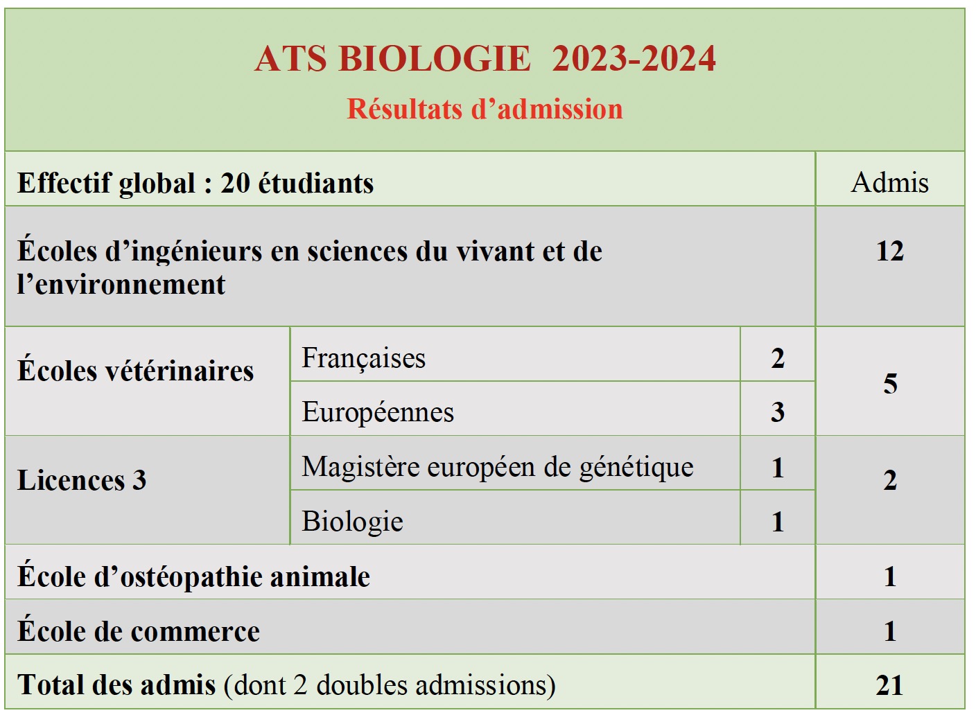 Classe ATS BIO fermée pour l'année scolaire 2024-2025